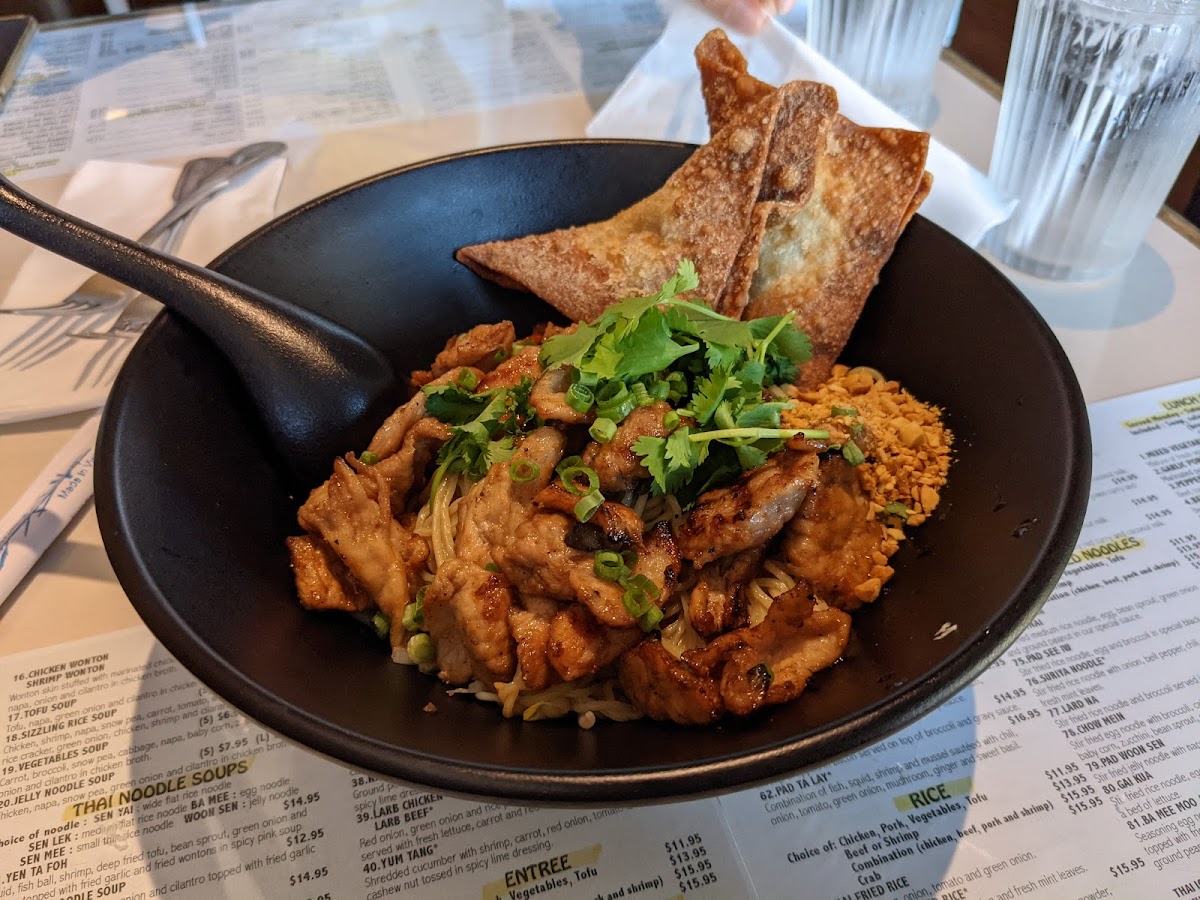 crispy rice noodle mixed with shrimp, chicken and pork sauteed in delightful sauce